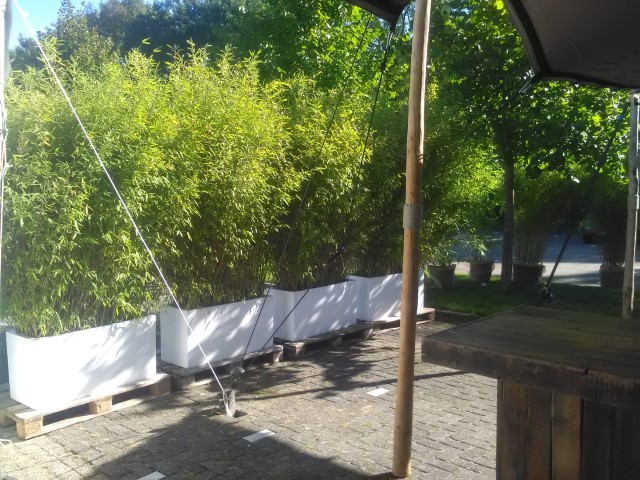 - De planten vertegenwoordigen een waarde gemiddelde waarde van 65 euro per plant vanaf circa 200 cm hoog. Voor de verhuur van de witte bakken met bamboeplanten geldt een waarde van 365 euro per bak.
