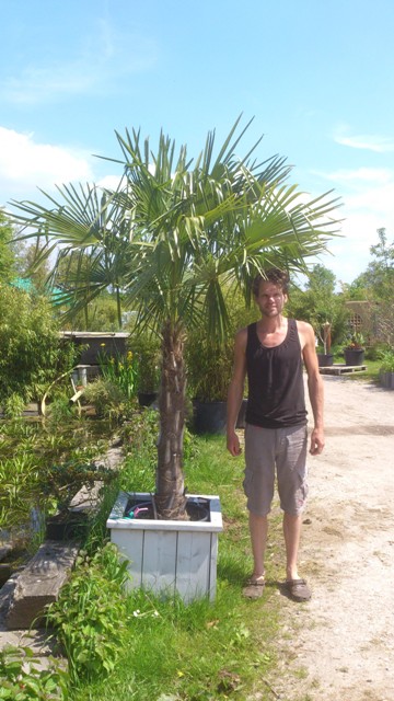Op deze pagina vindt u onze palm in zwarte kweekpot. De kosten zijn exclusief transportkosten, de uiteindelijke kosten kunnen daarom hoger uitvallen. Het zijn een perfecte planten voor uw event of beurs die eventueel verfraaid kunnen worden met bamboe borderrol of met een steigerhouten bak. Binnen maximaal een paar dagen houdbaar. Buiten langer te gebruiken.